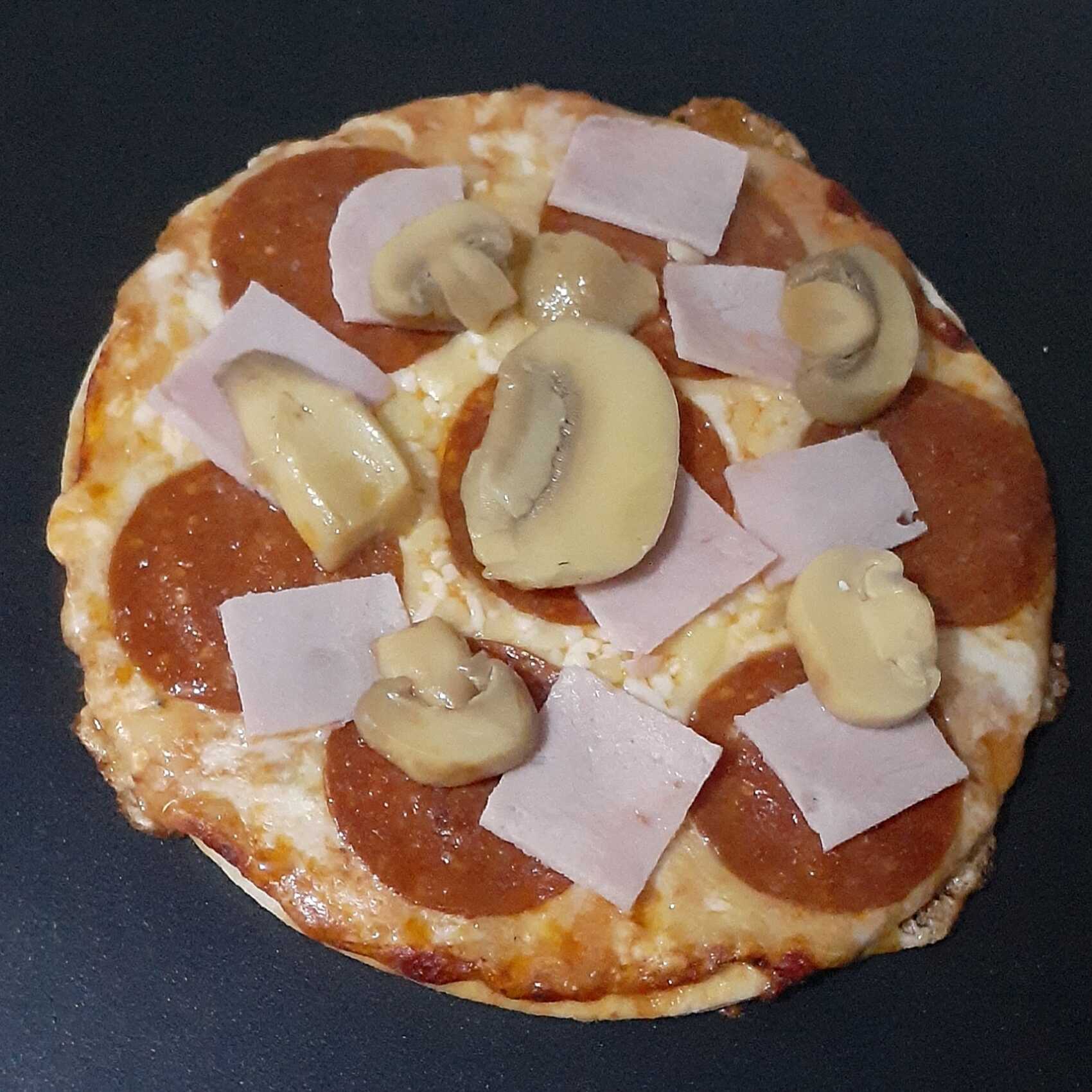Pizza de Pepperoni, jamon y champiñon individual de 15cm de diametro