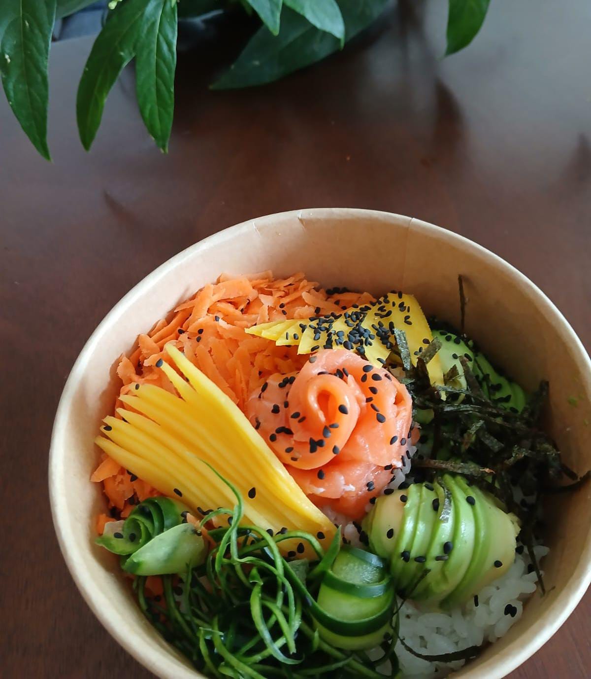 Tazón de arroz japonés cubierto con Salmon salteados al estilo oriental, acompañados de vegetales frescos y bañados en una salsa especial de la casa. Una opción deliciosa, ligera y llena de sabor.
