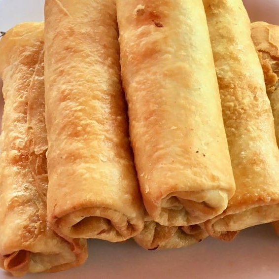 Delicioso rollo crujiente relleno de vegetales frescos, servido por pza.