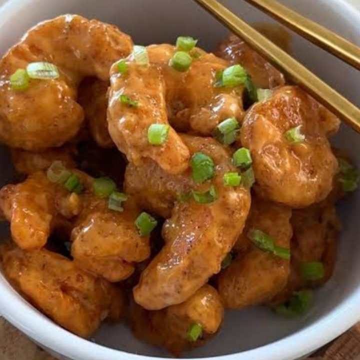 12 pzas De camarones crujientes bañados en la tradicional salsa agridulce de la casa.