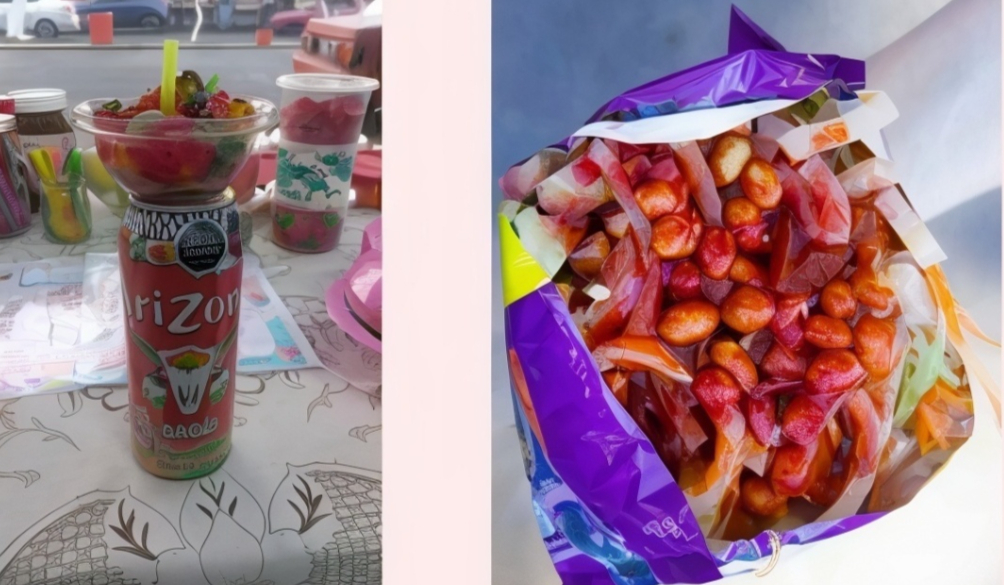 Tostitos verdes con cuerito salchichas pepino jicama cacahuates rielitos sal limon chile de botella salsa magui salsa soya