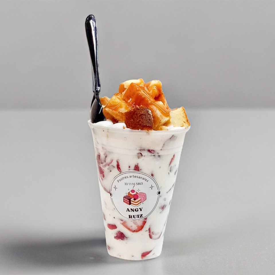Fresa natural con. Crema y topping de chocorol
