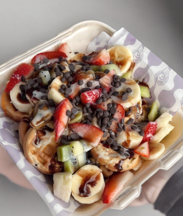 Mini Wuafles con fruta lechera Nutella o chocolate a elección