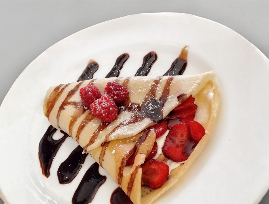 Crepa dulce rellena de fruta a elección con tutella ,cajeta o lechera