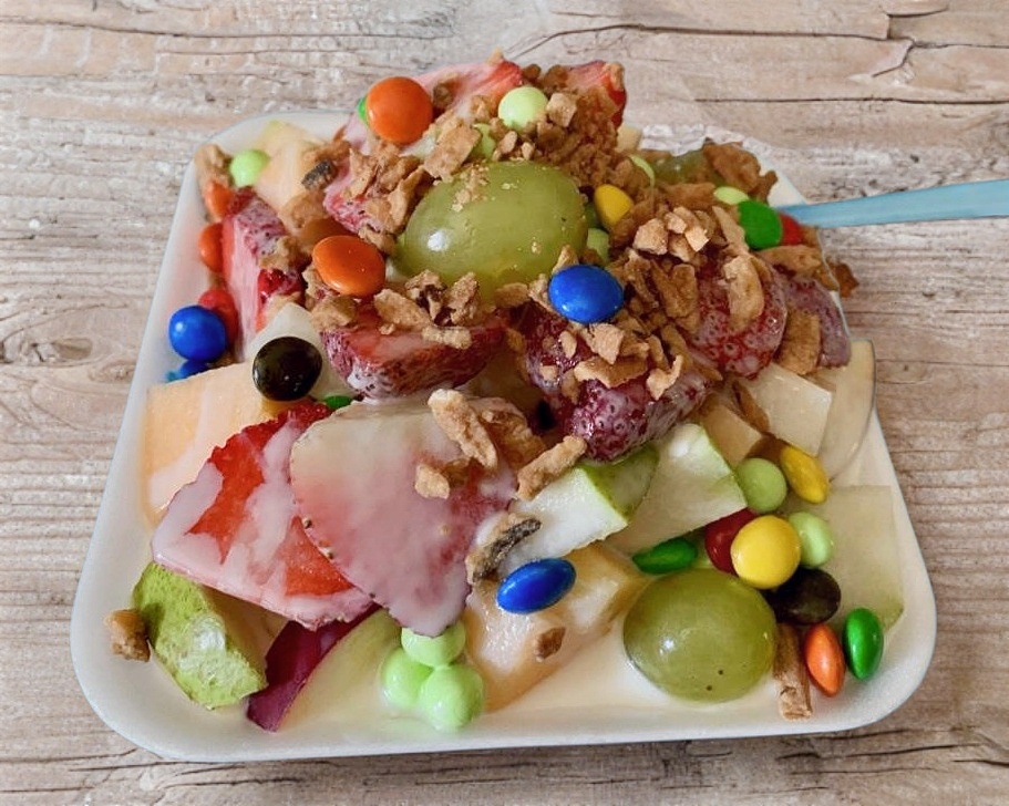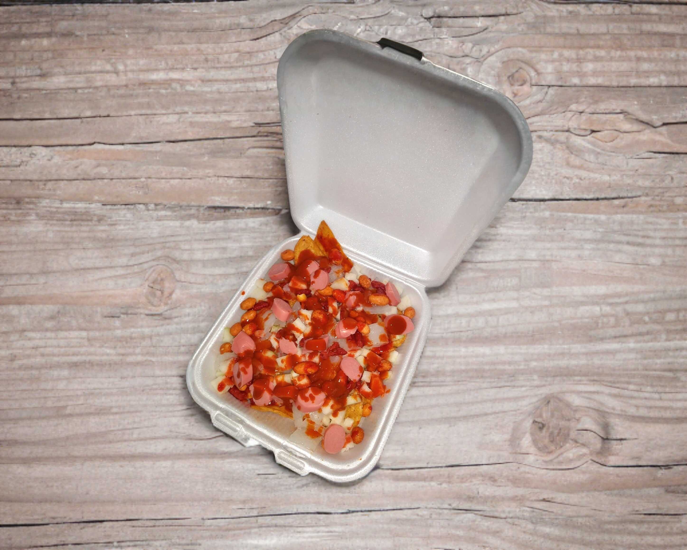 Preparados con salchicha, pepino, cacahuate, dulce tamarindo, cueritos, salsa maggi, salsa inglesa y chamoy .