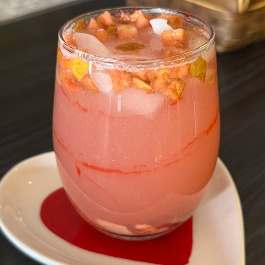 Manzana, arándano, fresa, pétalos de rosa, menta y lichi