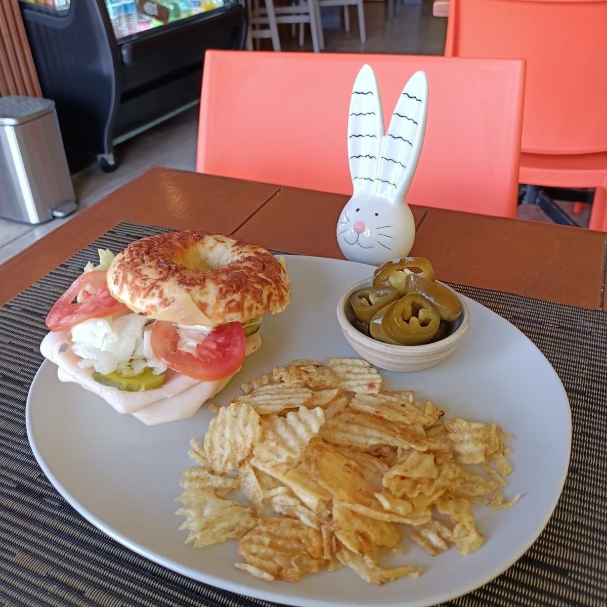 Bagel con aderezo a elegir, las carnes frías de tu preferencia, queso manchego, lechuga, tomate y pepinillos