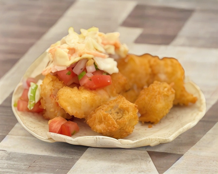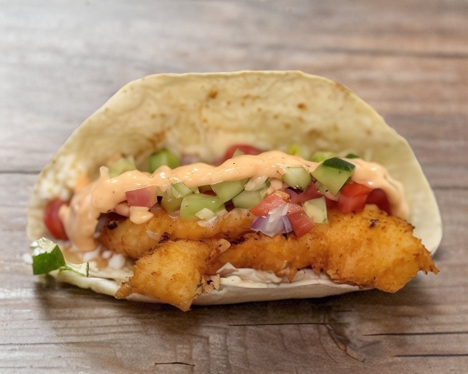 TORTILLA DE TAMAÑO NORMAL FREIDA CON PEASCADO Y PICO DE GALLO
