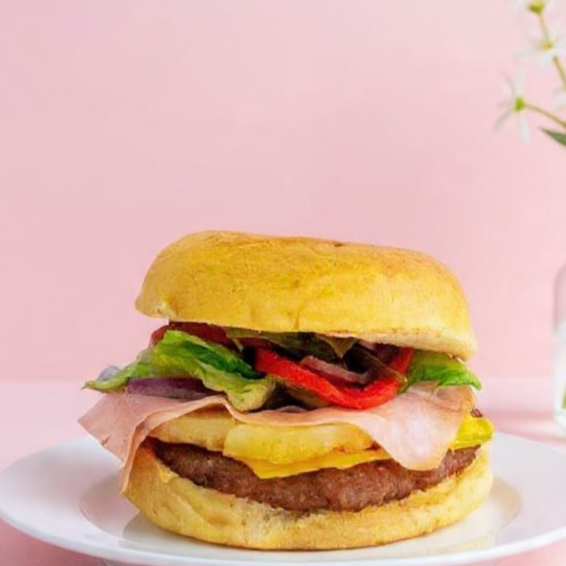 Con jamón, piña, tocino, queso blanco, queso amarillo, vegetales frescos, catsup mostaza y crema.