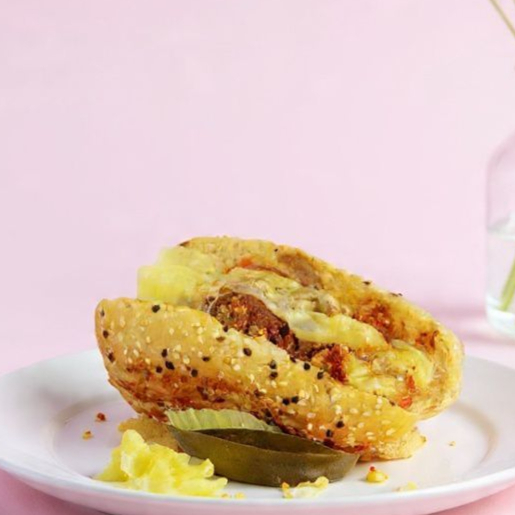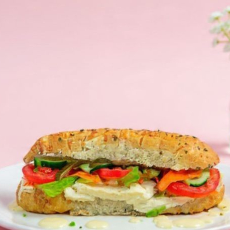 Baguette con pan artesanal acompañado de vegetales frescos (lechuga, cebolla, jitomate, zanahoria, pepino y jalapeño.