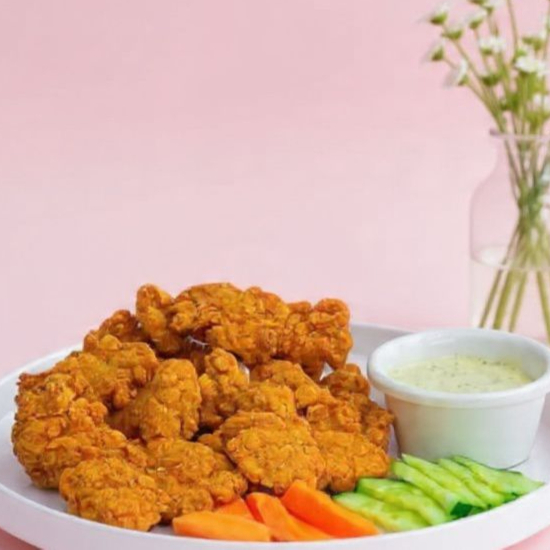 Acompañado de vegetales frescos: lechuga, cebolla, jitomate, zanahoria, pepino y jalapeño