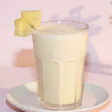 Bebida preparada a base de jugo de piña, crema de coco, leche y un toque de granadina.