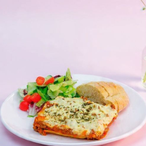 Lasagna 300 gramos. Acompañada de Guarnicion de Ensalada