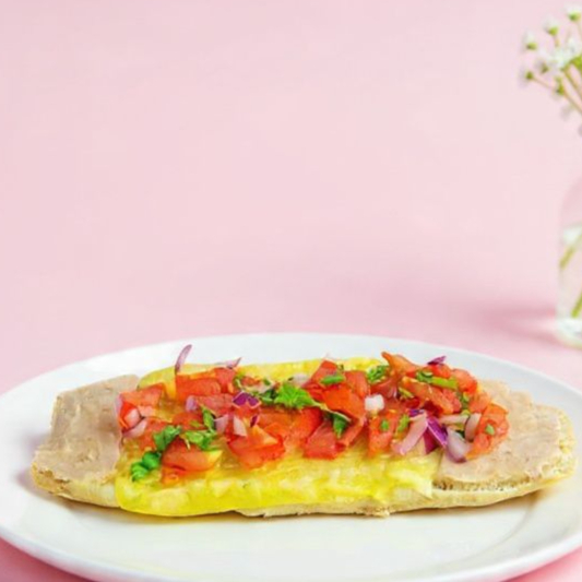 2 mitades. Acompañados de Frijoles refritos y queso fundido