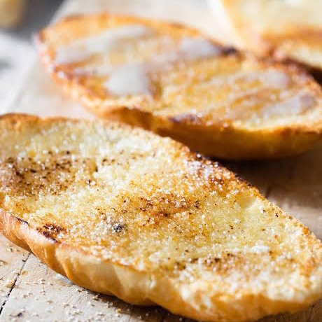 Bolillo calientito con un poco de mantequilla acompañado de azúcar