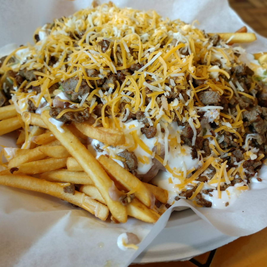 FRENCH FRIES, QUESO ASADERO, ASADA, CREMA Y SALSA DE AGUACATE