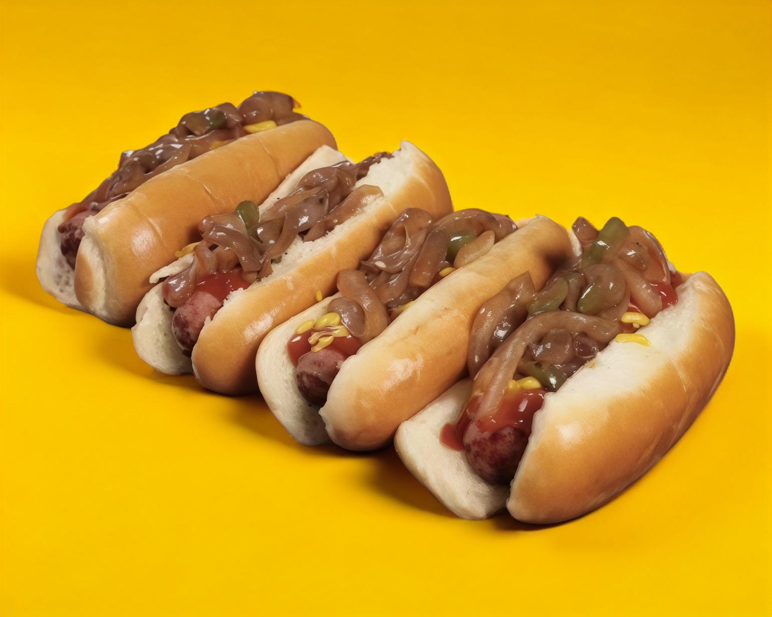 Pan, salchicha, cebolla, jitomate, crema, mostaza y catsup