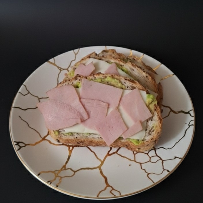 pan de masa madre, queso manchego, peperoni y un huevo estrelado