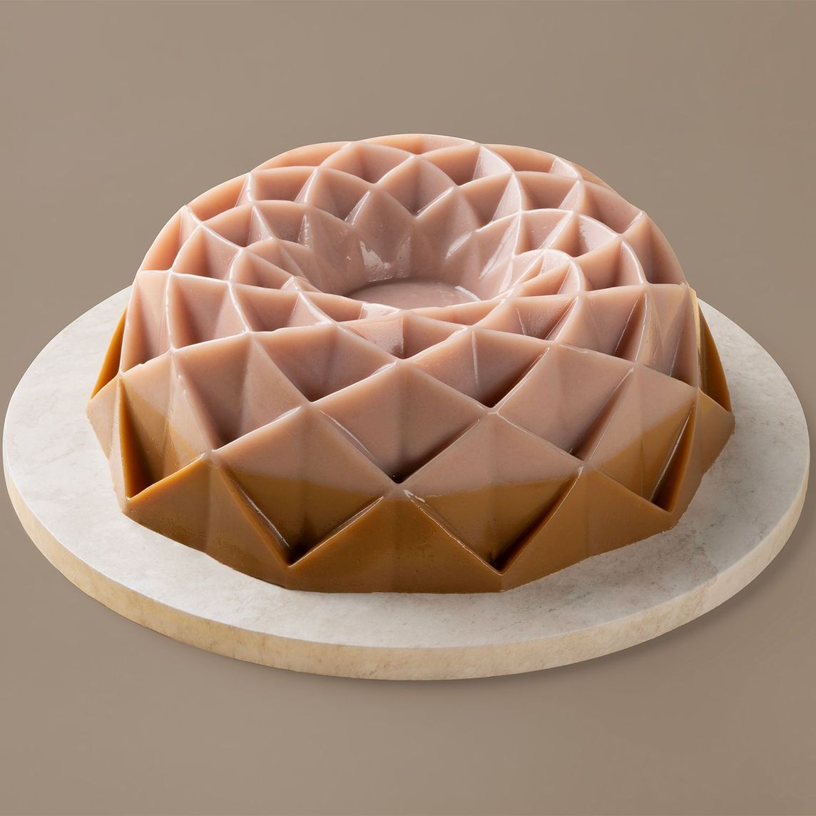 Atractiva gelatina de leche sabor guayaba rosa con cajeta, representando el tradicional dulce mexicano rollo de guayaba relleno.