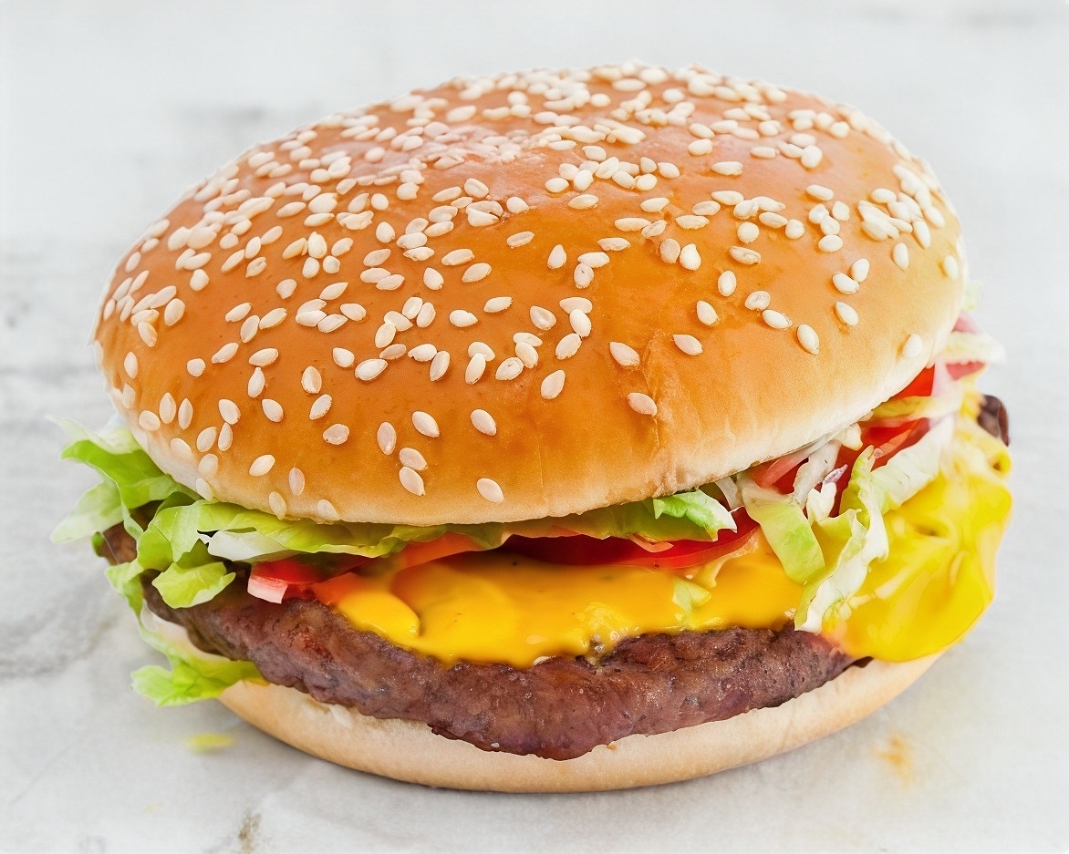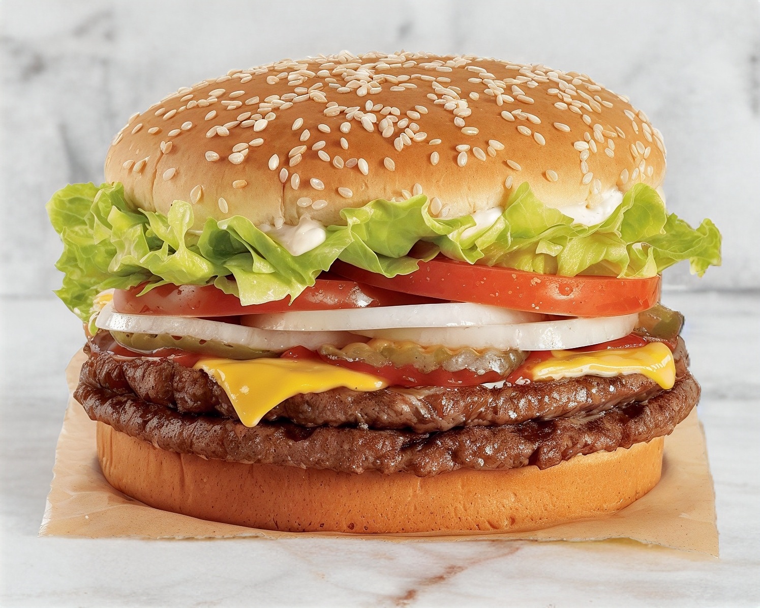 Doble carne de res, queso, jitomate, cebolla, lechuga y aderezo gloriso.