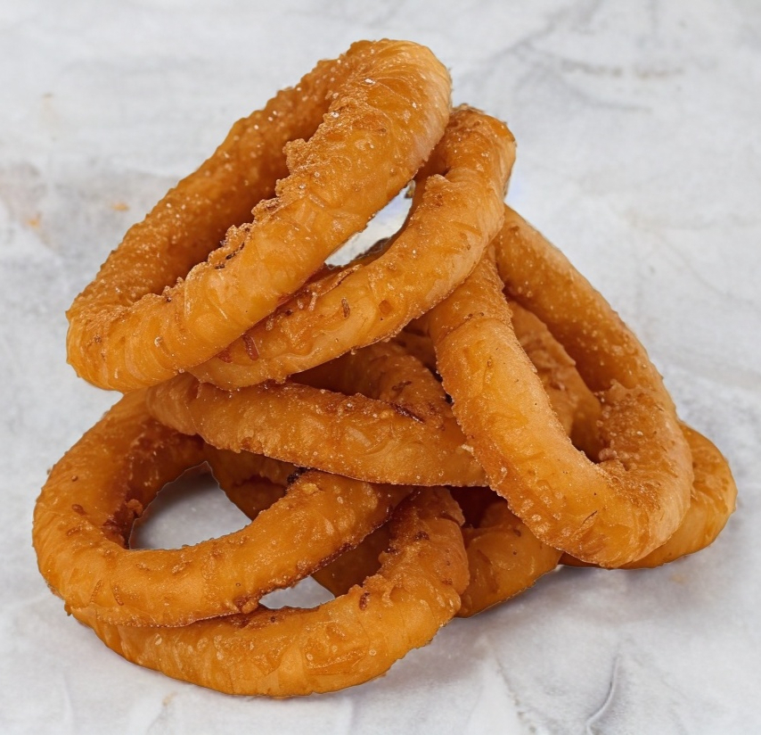 Carne de res, queso, aros de cebolla, tocino y aderezo chipotle.