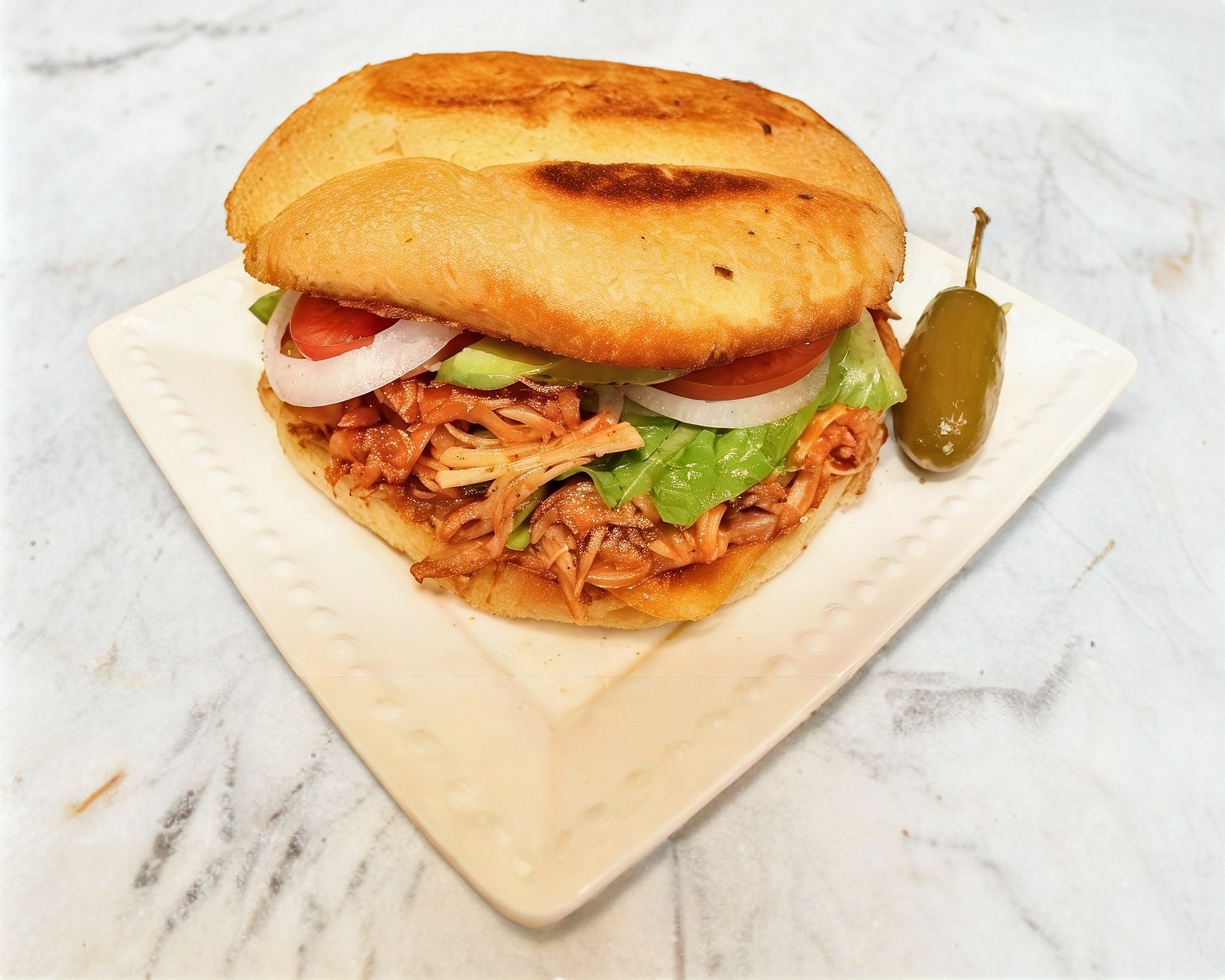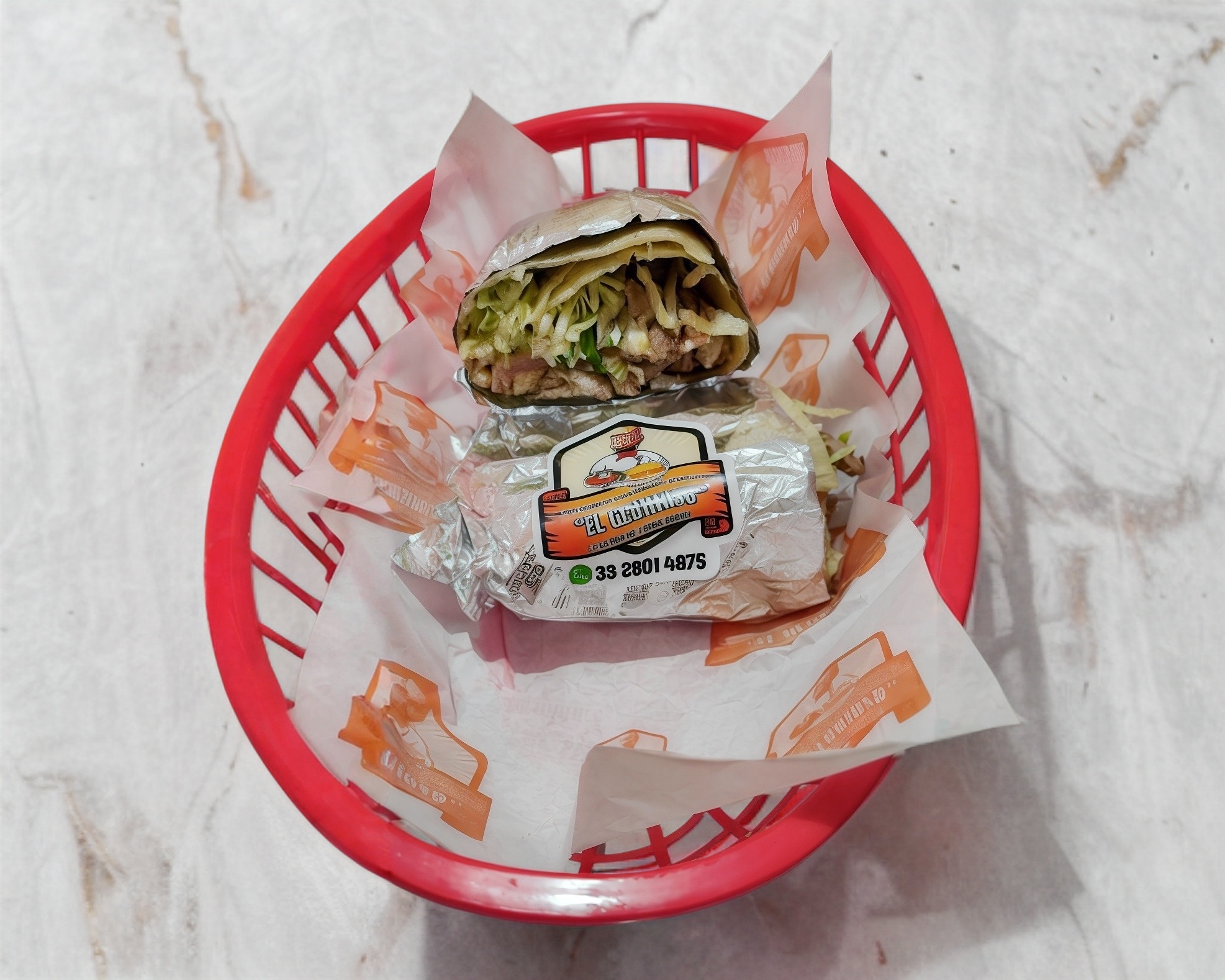 Pierna gloriosa, cebolla, jitomate, aguacate y aderezos de tu elección.
