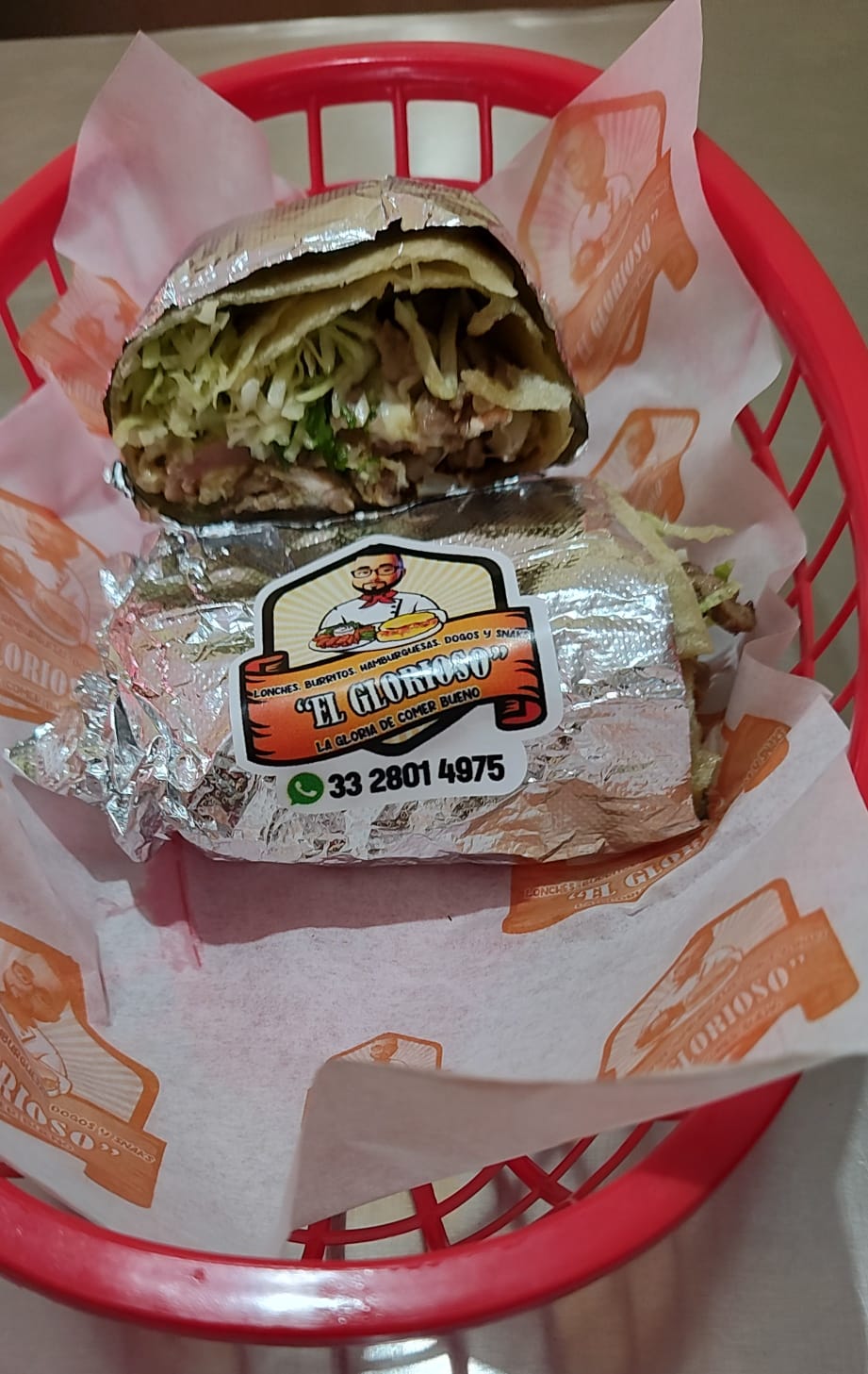 Carne de res, queso, jitomate, cebolla, lechuga y aderezo glorioso.