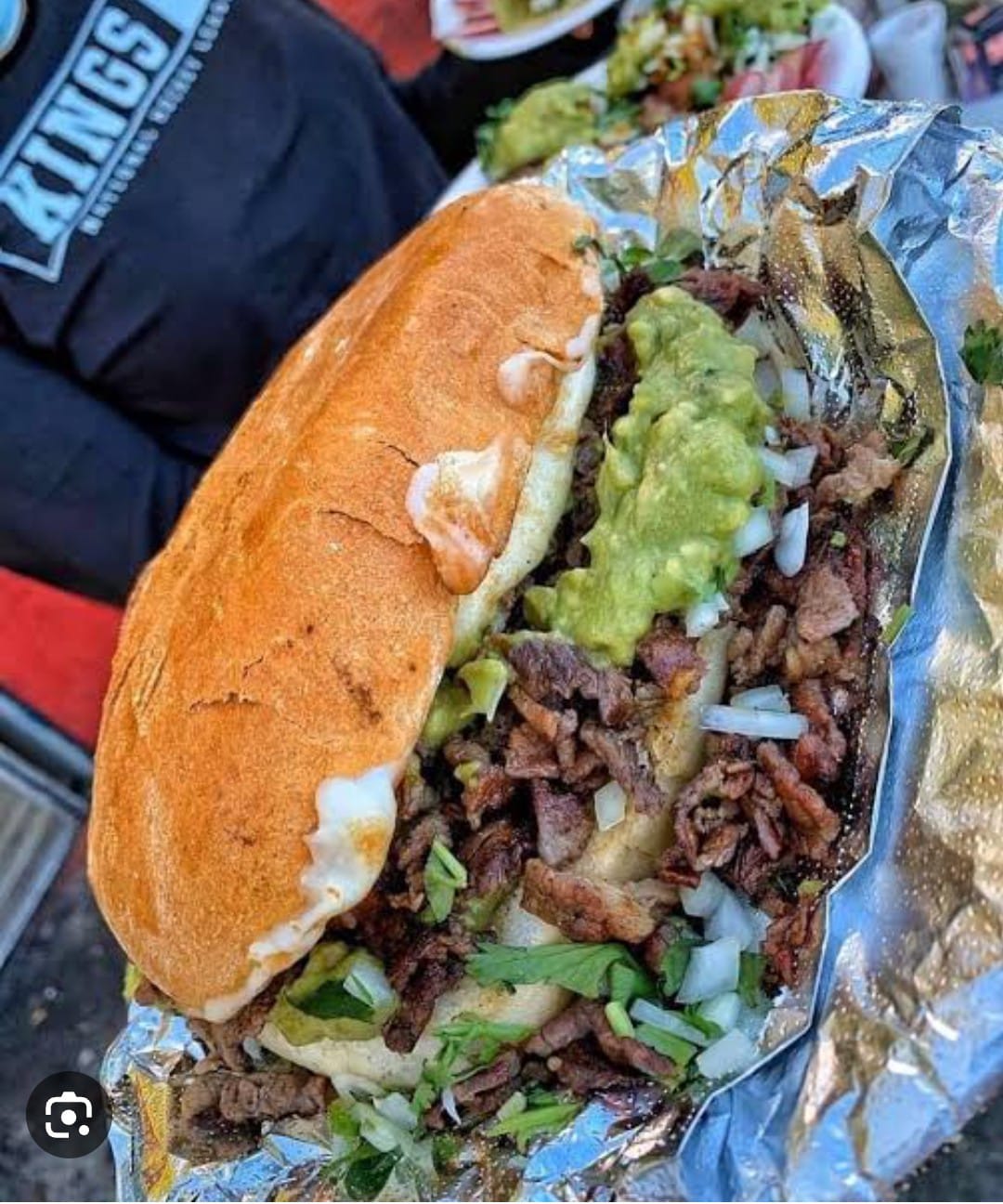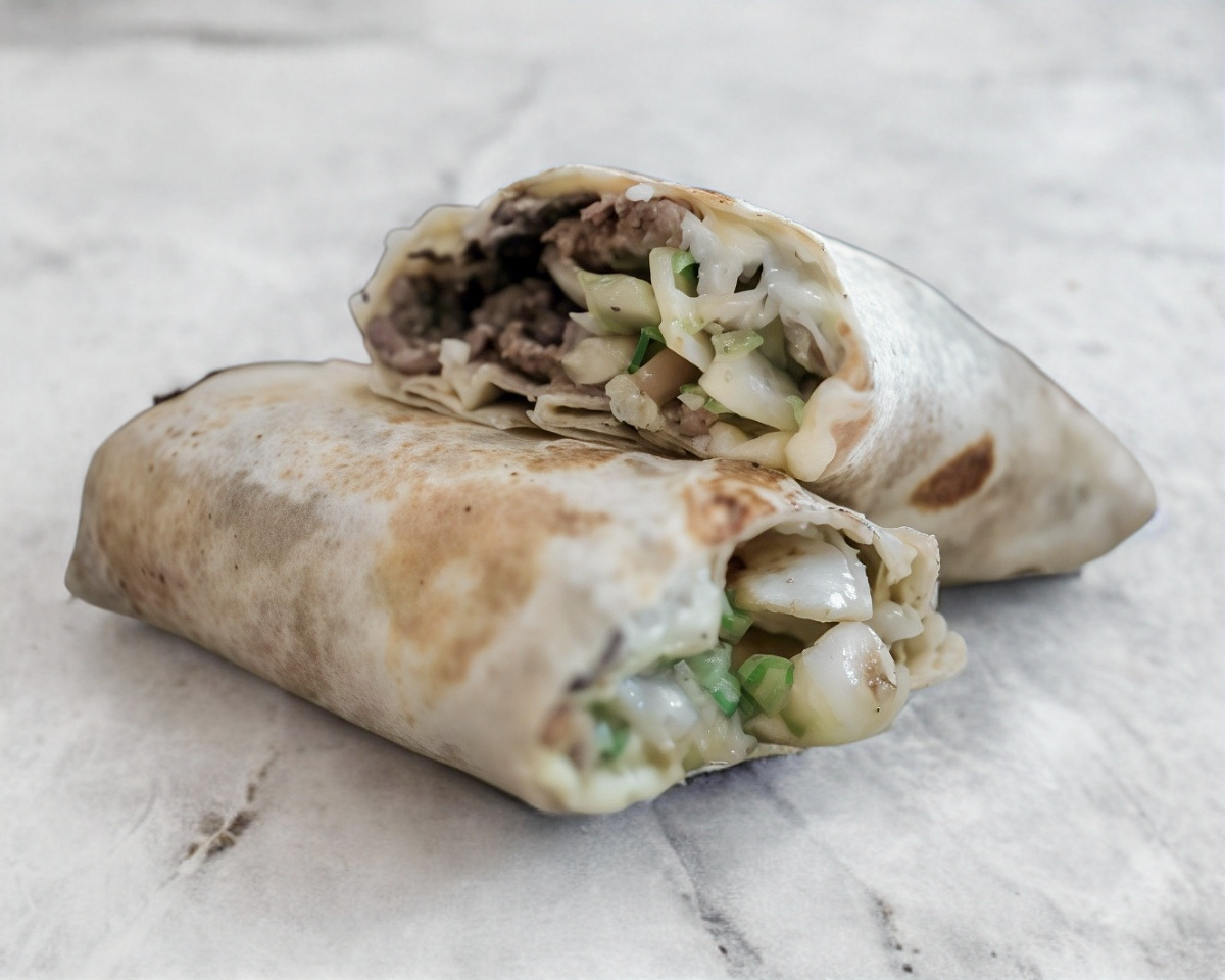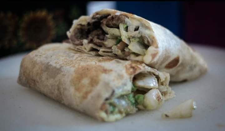 Deliciosa burrita de 35 cm, hecha de tortilla de harina con queso fundido, chorizo, arrachera, frijoles guisados, cebolla asada , guacamole, frijoles de la olla, cebolla y cilantro.