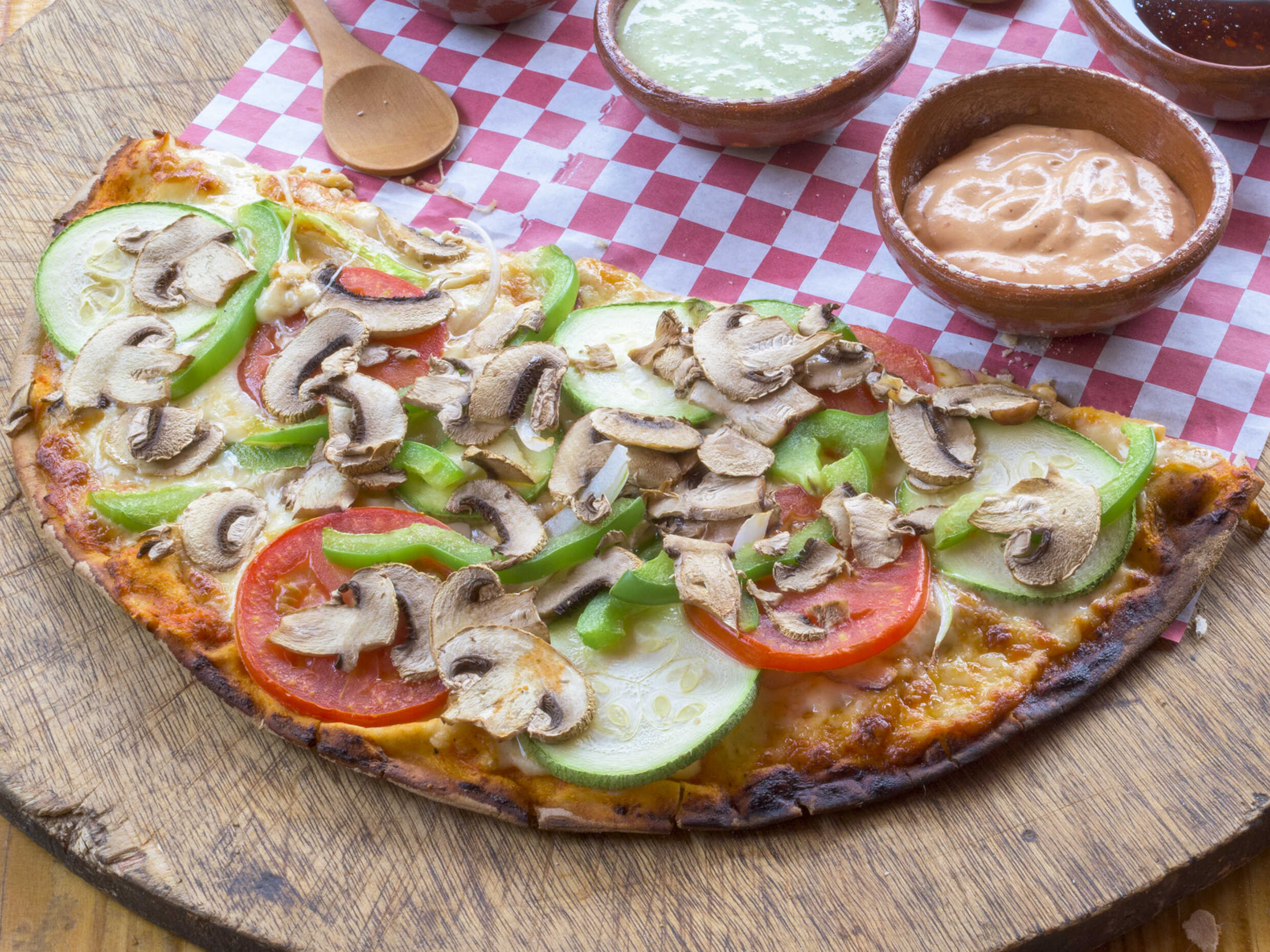 Cebolla, jitomate, calabaza, morrón y champiñón.