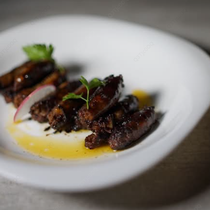 Salchichas de cordero con un toque de jugo de granada y pinón.