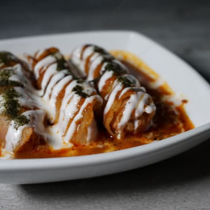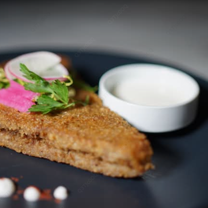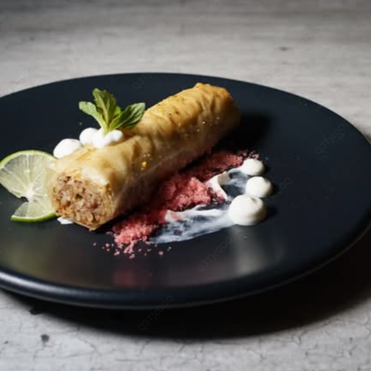 Kipbe de carne de res en charola horneada acompañado con jocoque fresco para bañar.