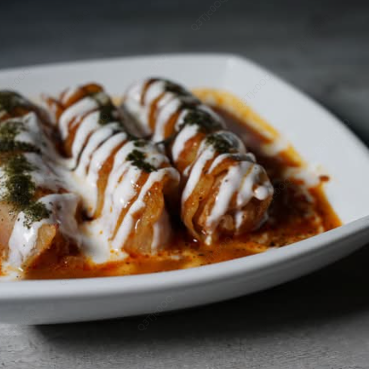 Tacos elaborados con hoja de col, rellenos con arroz y carne.