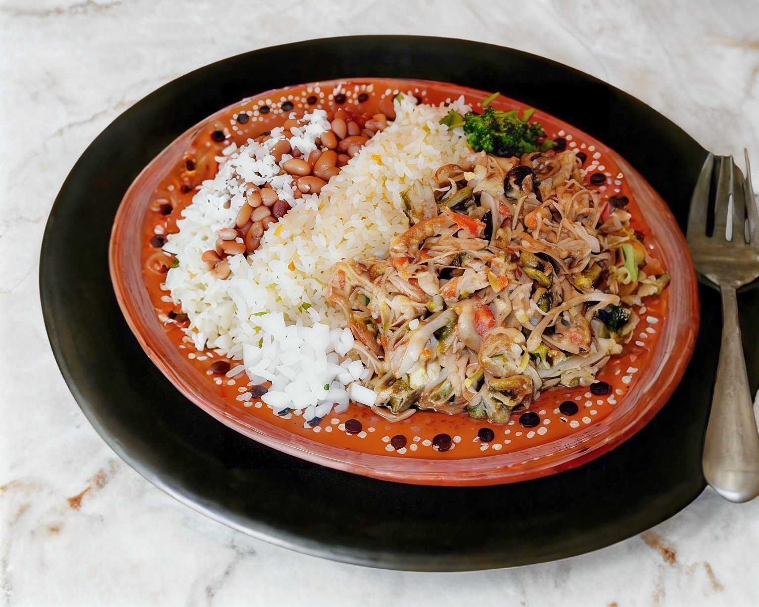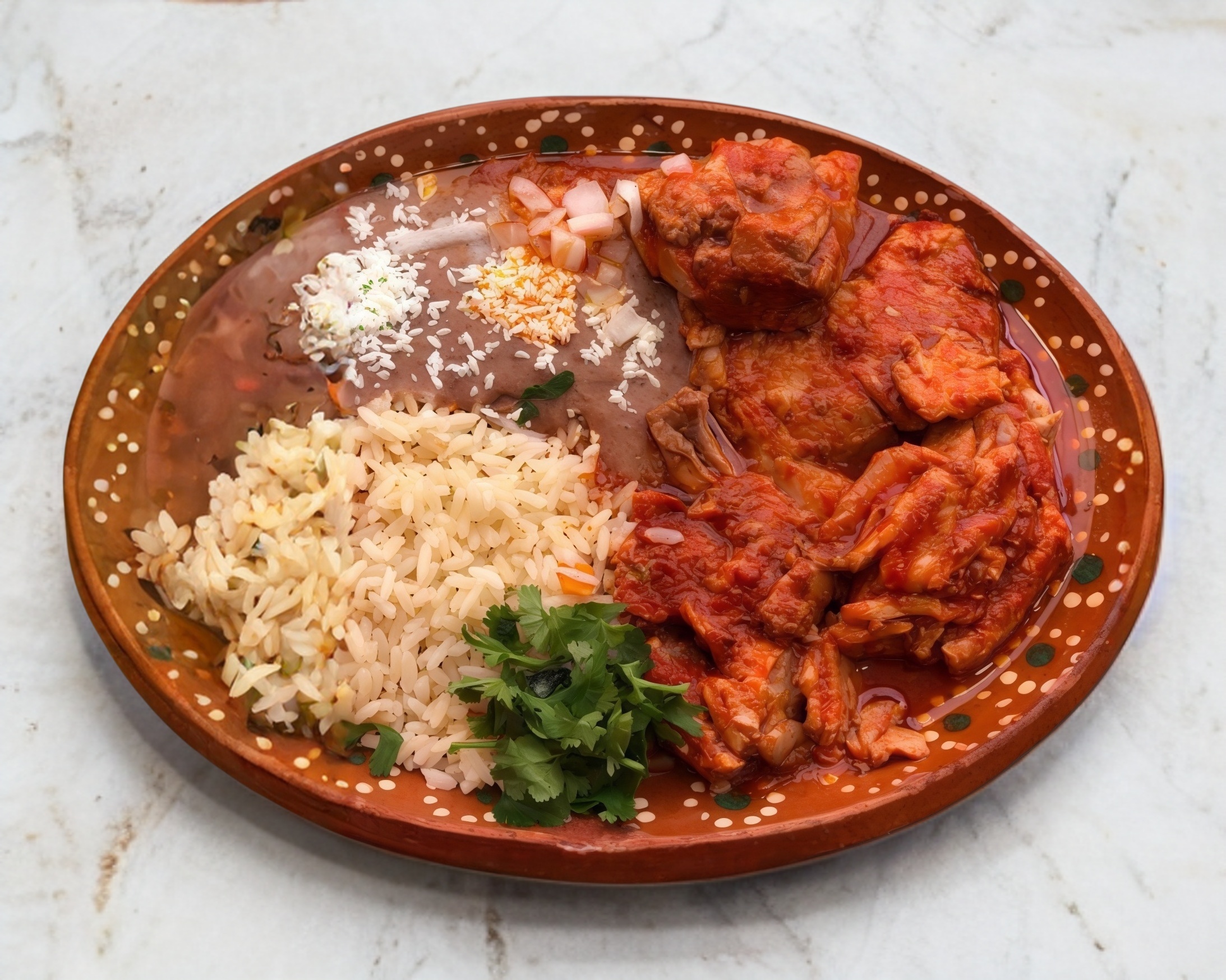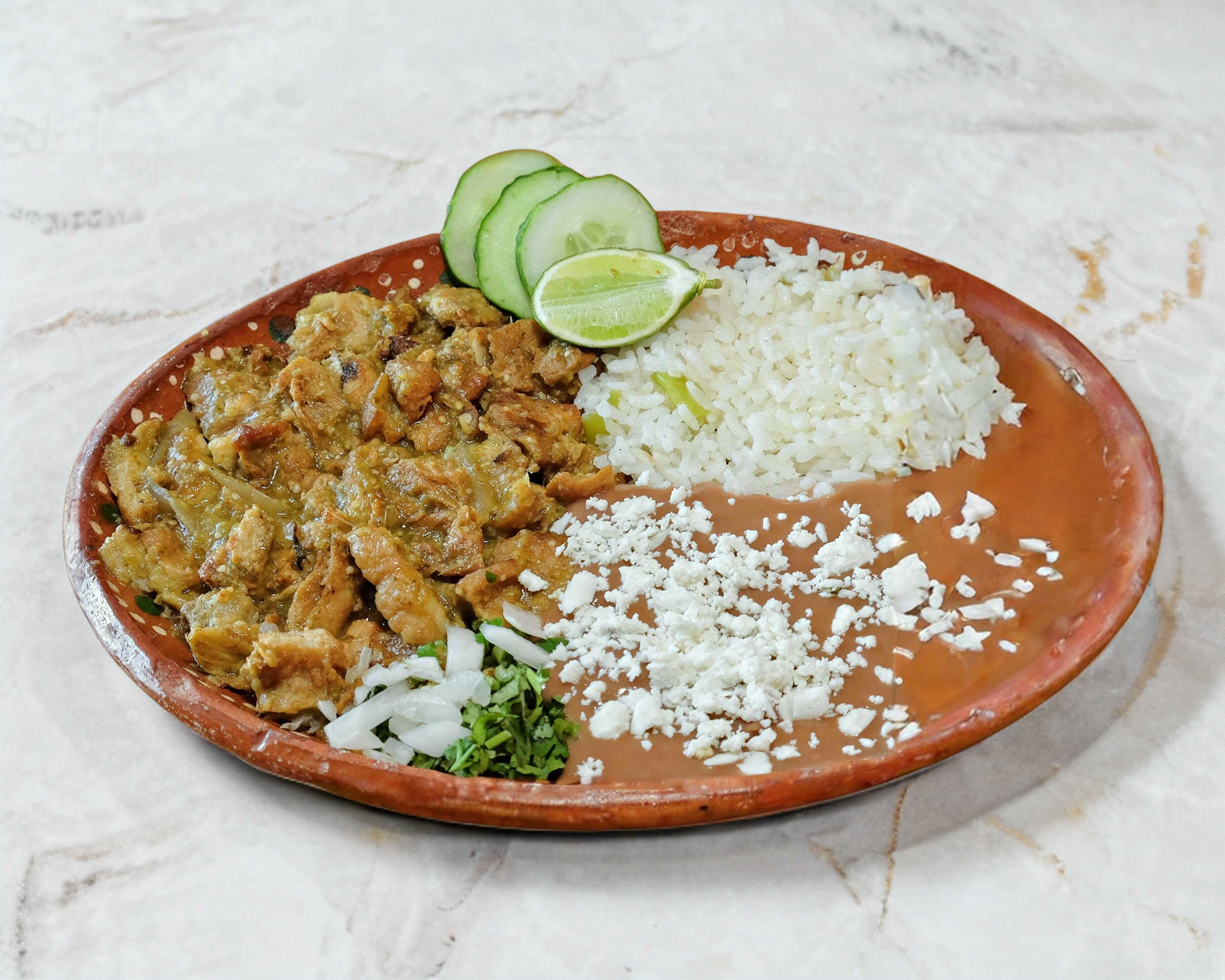 Incluye arroz, frijoles, y 3 tortillas hechas a mano.
