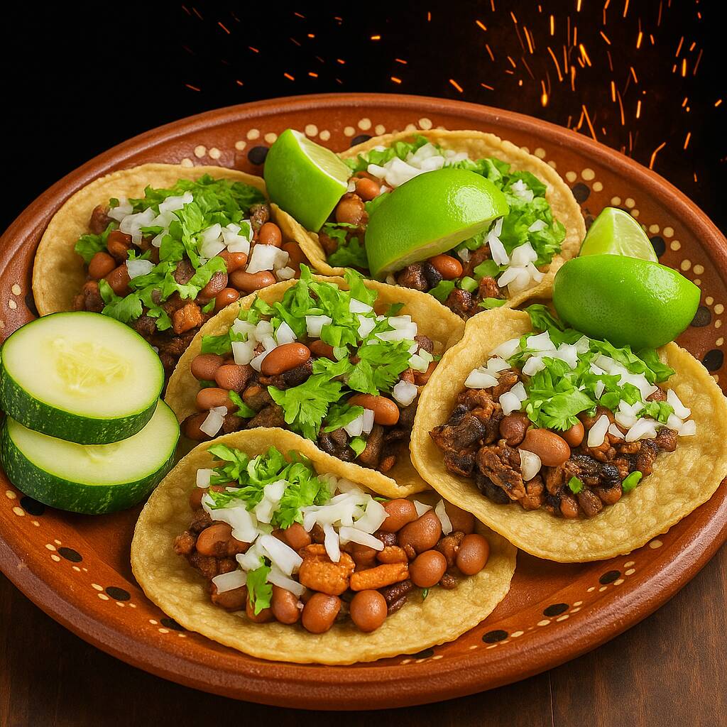 Disfruta de nuestros legendarios tacos de arrachera, una orden de cuatro suculentos taquitos servidos en tortillas recién hechas a mano. Acompañados de frijoles de la olla, cebolla fresca y un toque de cilantro, estos tacos son la combinación perfecta de sabor y tradición, ¡una experiencia gastronómica que no te puedes perder!.incluye salsas