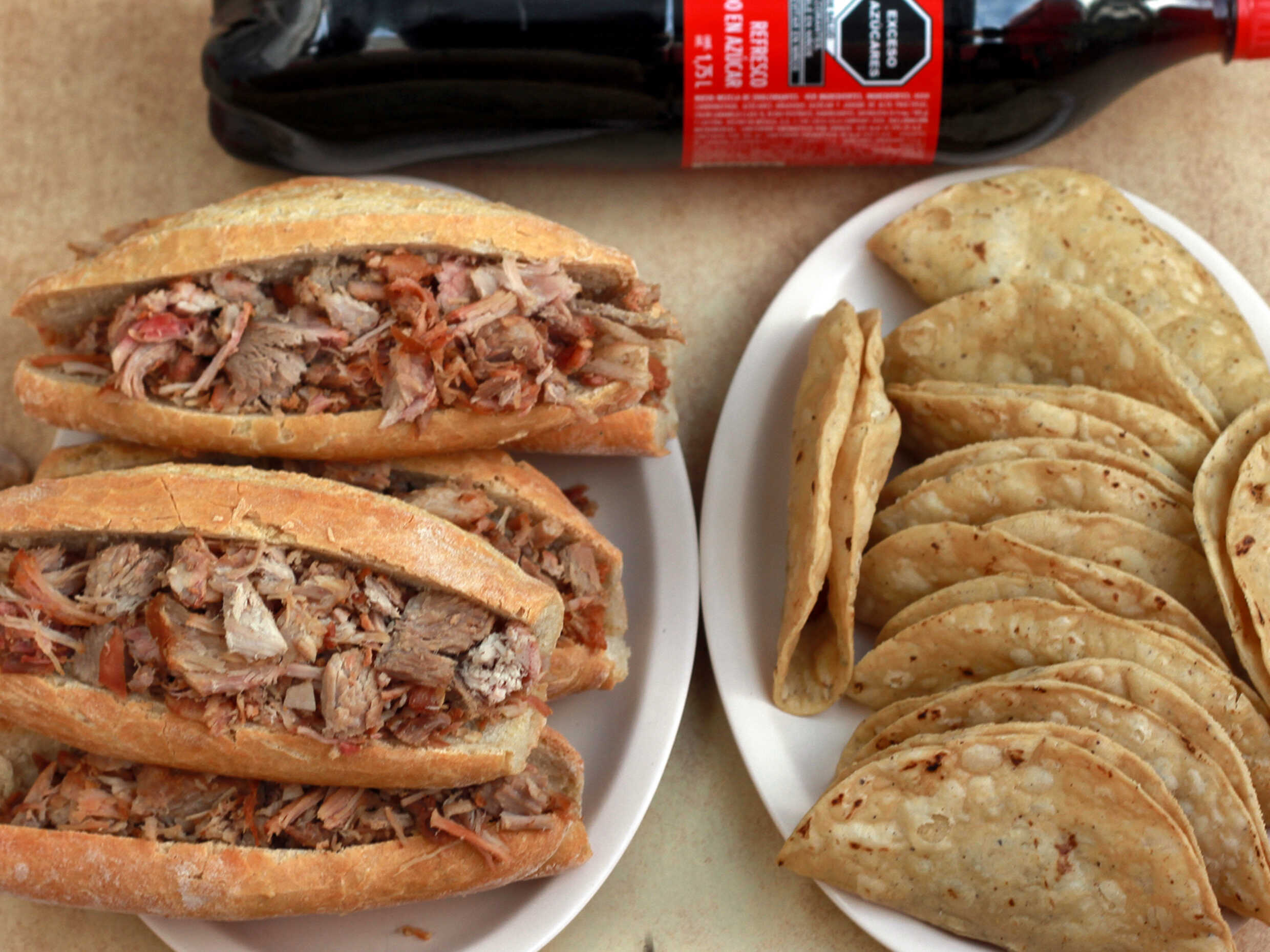 Torta de Carnitas*1 + Taco sencillo de Papa*1 + Taco sencillo de Frijol*1