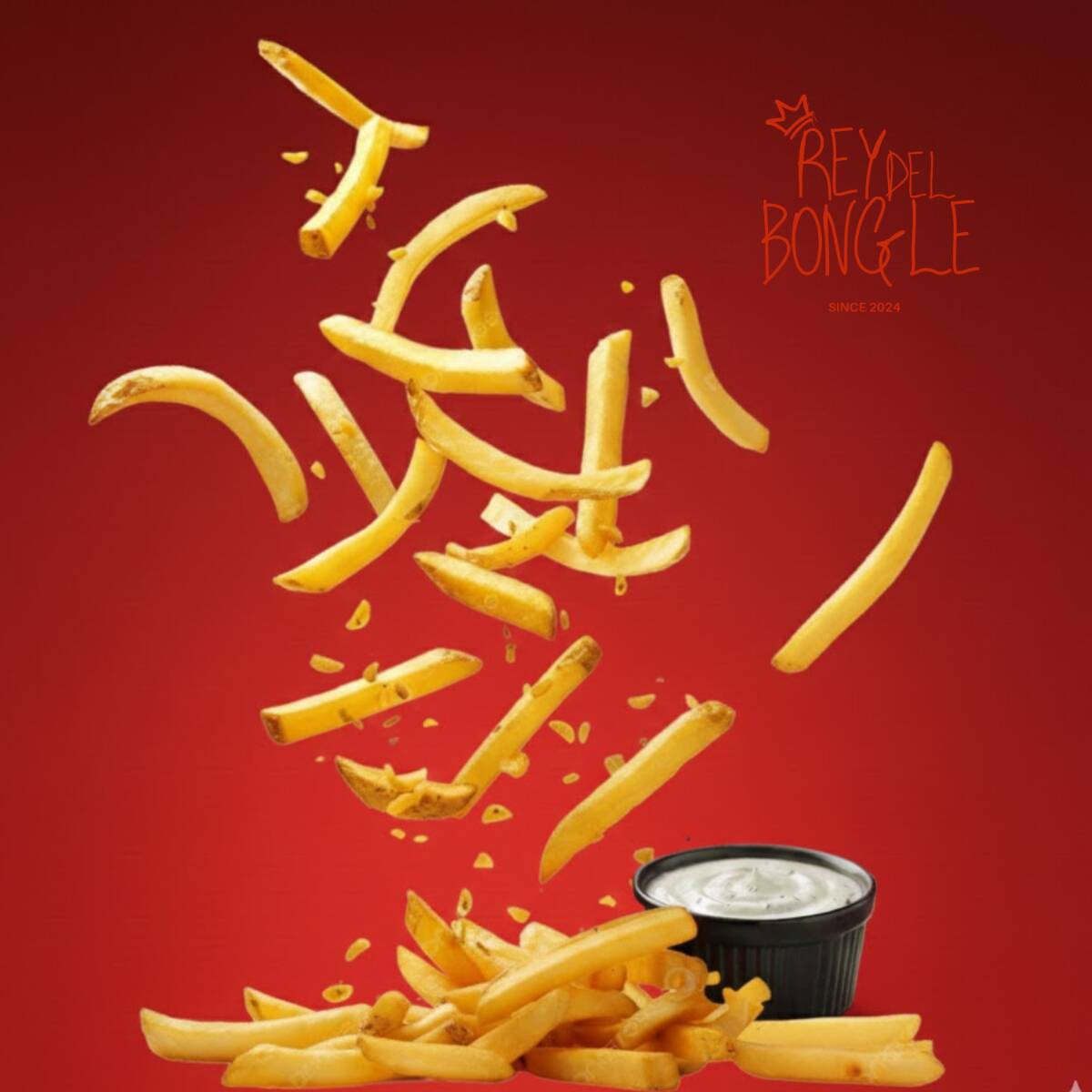 12 piezas de Alitas con calidad Rey del bongle! elígelas con la salsa que quieras! (puedes combinar) incluye ración de papas a la francesa y 1 dip de ranch.