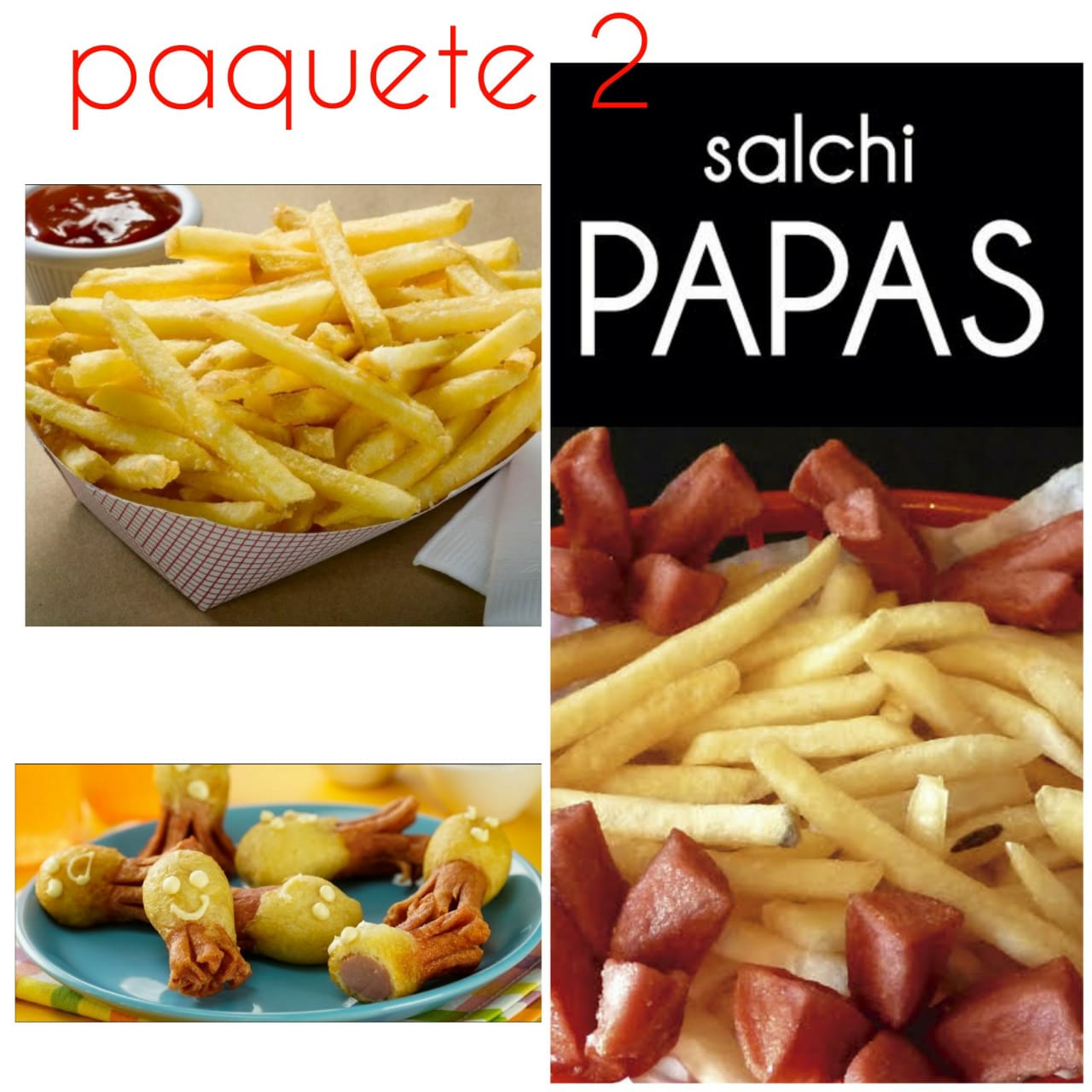 1 Papas a la francesa grandes, salchibolas con salchipulpos grandes