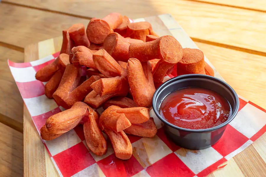 Salchicha envuelta en tortilla de maíz y frita en aceite