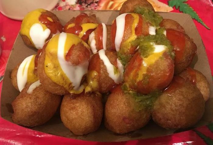 Bolitas de queso manchengo envueltas con masa de banderilla