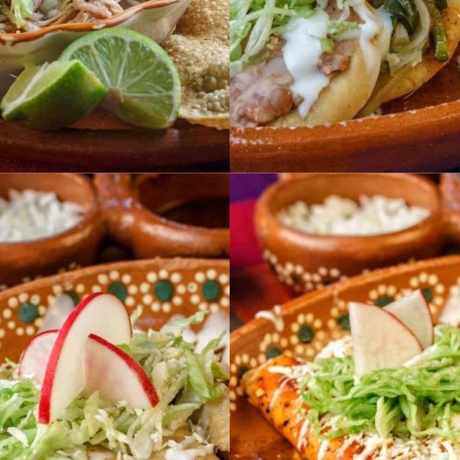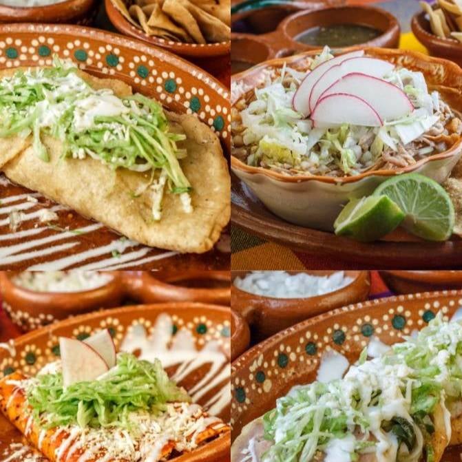 4 lt pozole - 10 pz enchiladas - 10 pz sopes - 10 pz taco dorado - 4 qkas fritas - 5 pz flauta