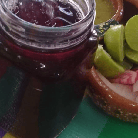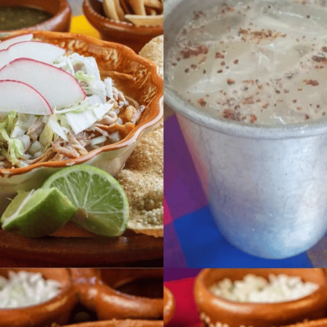 1 lt pozole - 1 pz taco dorado - 1 pz enchilada - 1 lt agua fresca