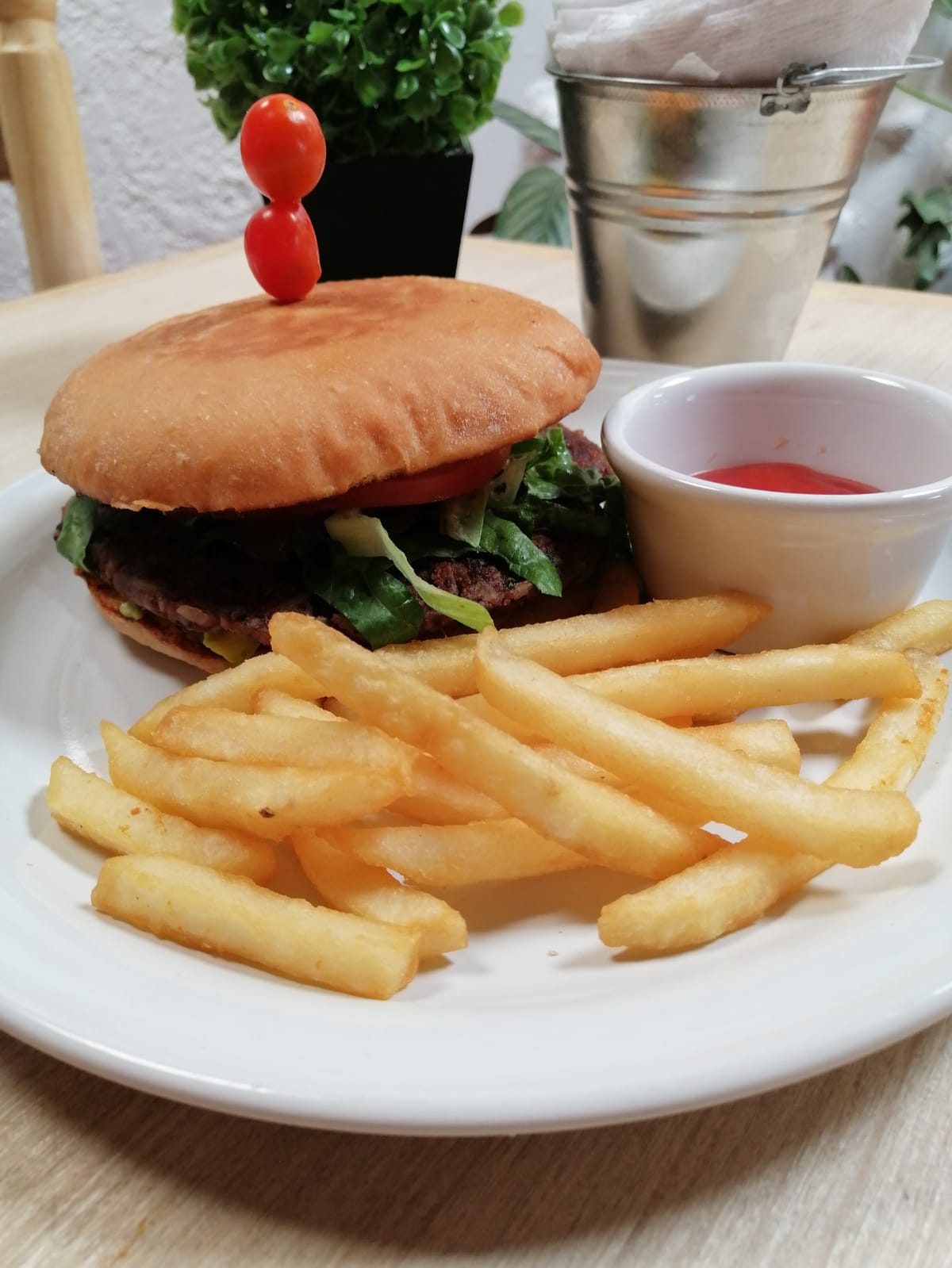 Elaborada con avena y acompañada con papas
