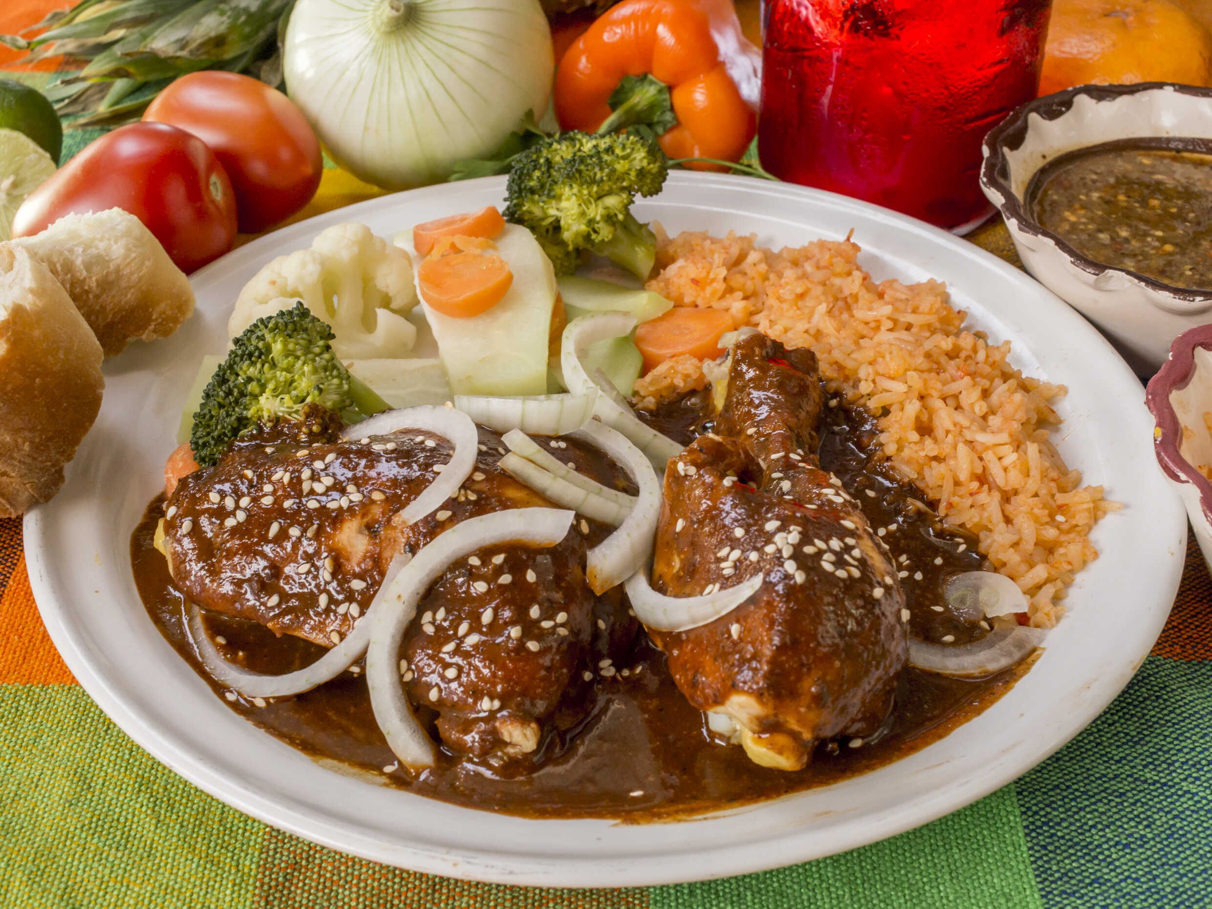 Mole con Pollo + Agua Fresca del dia 1 lt