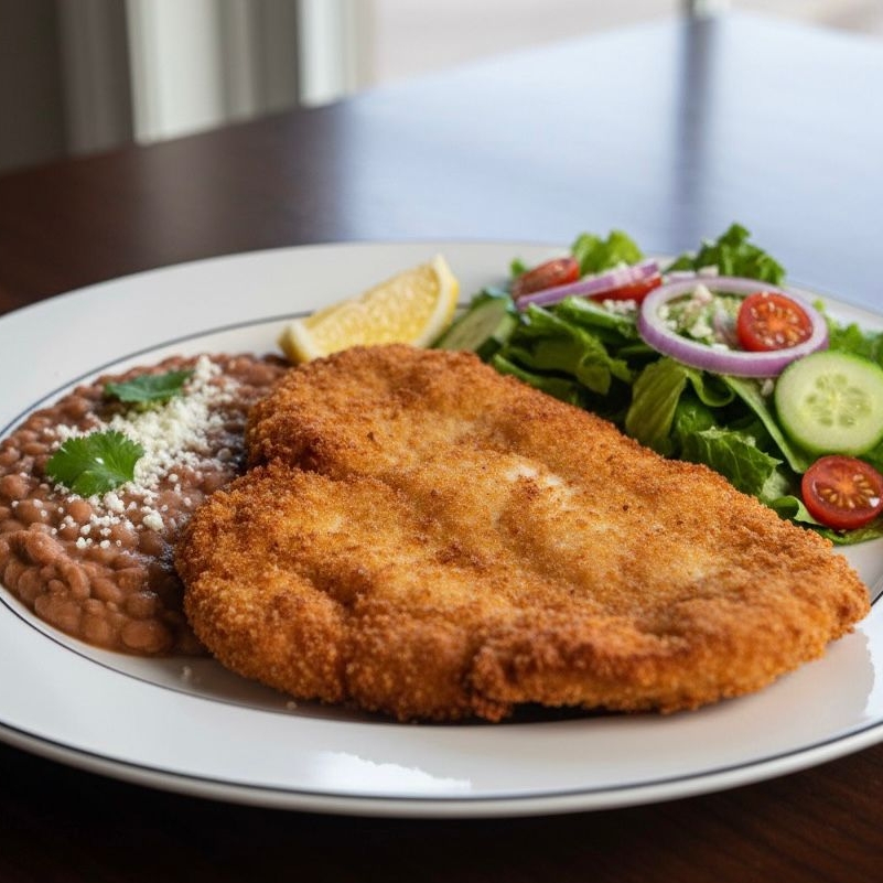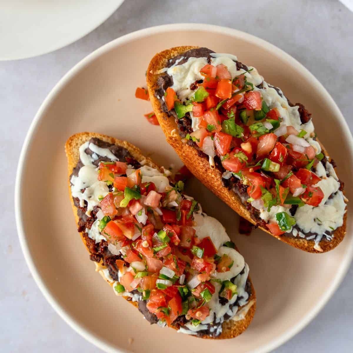 Medio birote dorado con frijoles Queso gratinado y salsa mexicana