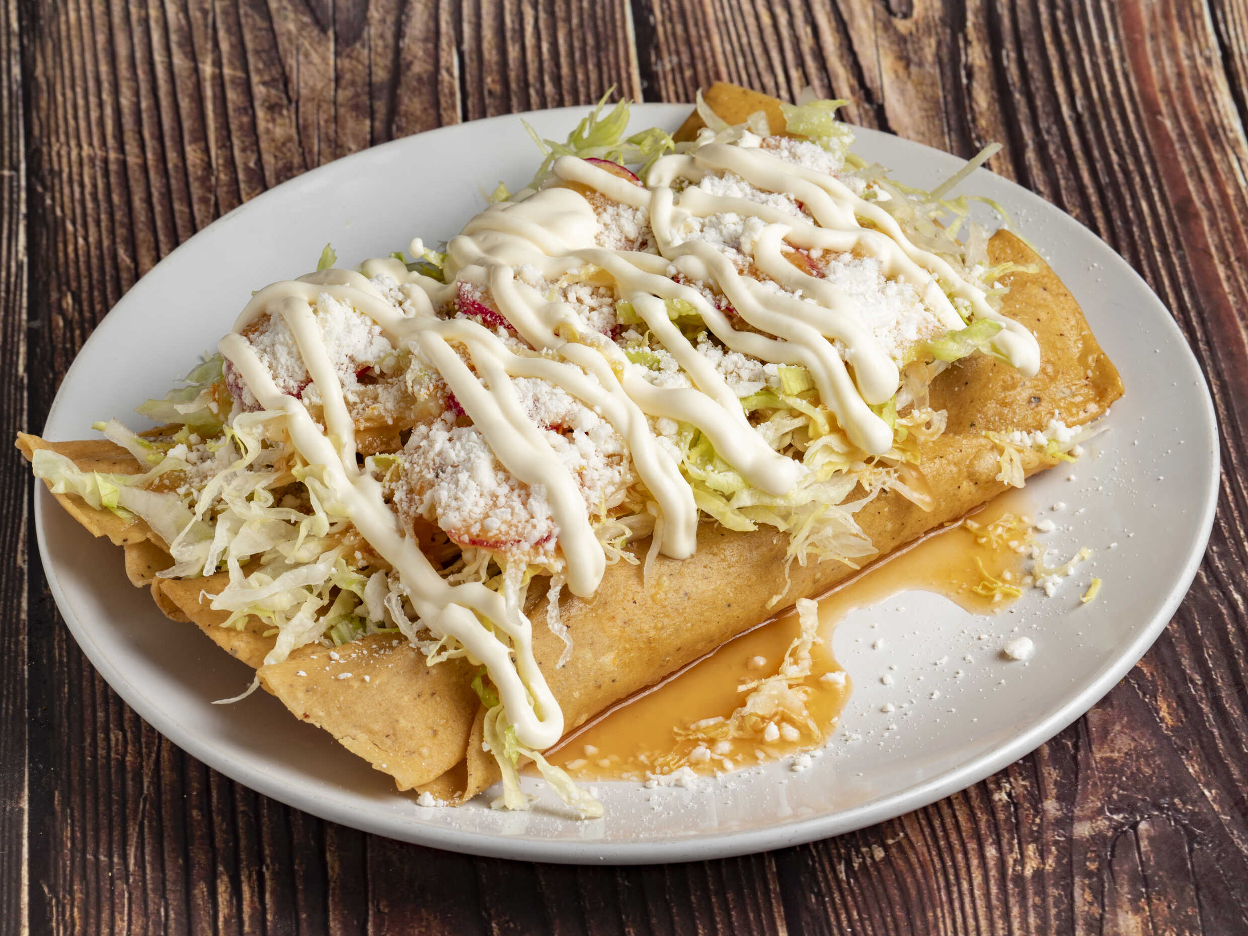 1 pieza acompañado de lechiga, crema, salsa, queso y picante