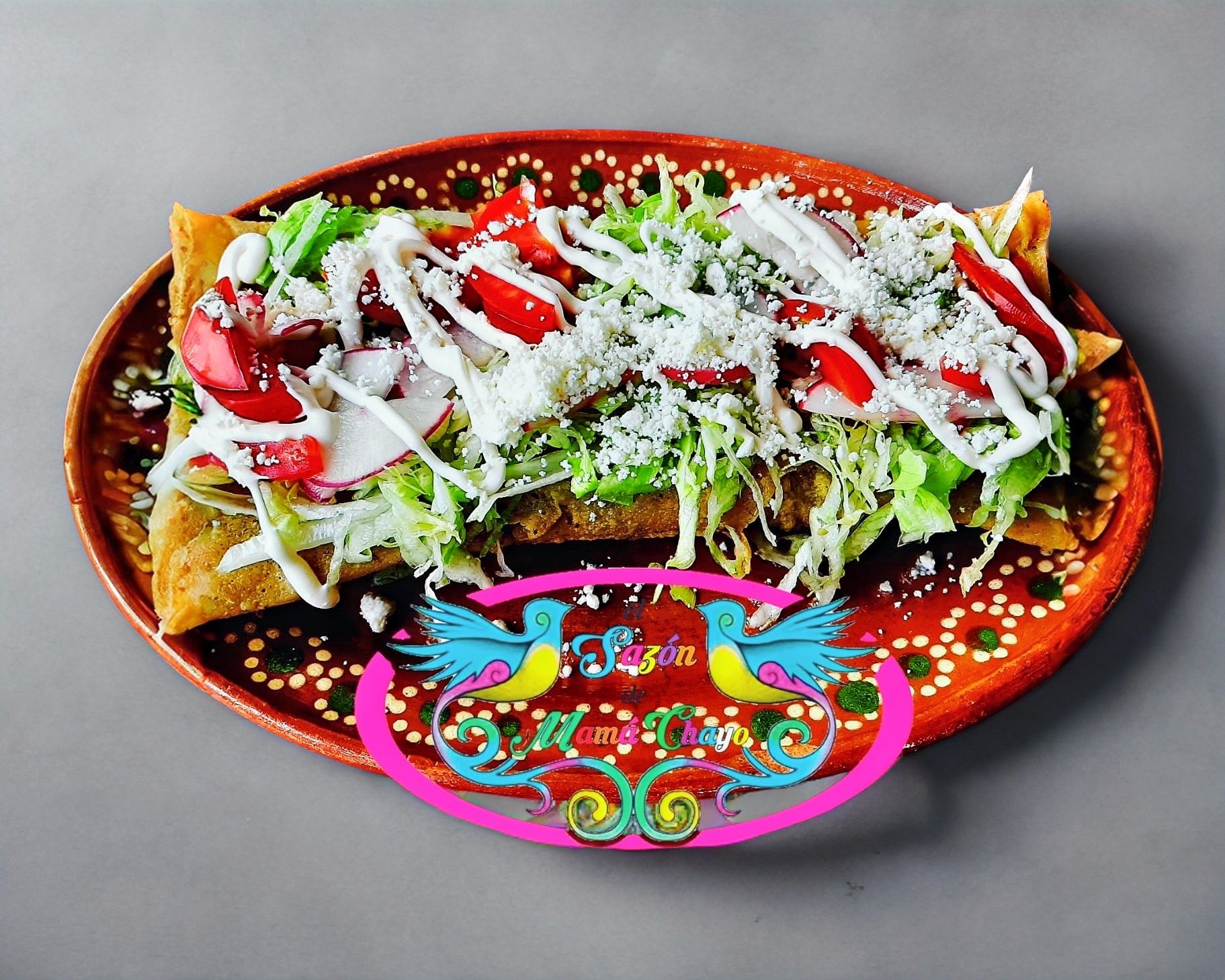 Enchilada incluye jitomate lechuga pollo salsa con chile y salsa sin chile (porción personal)