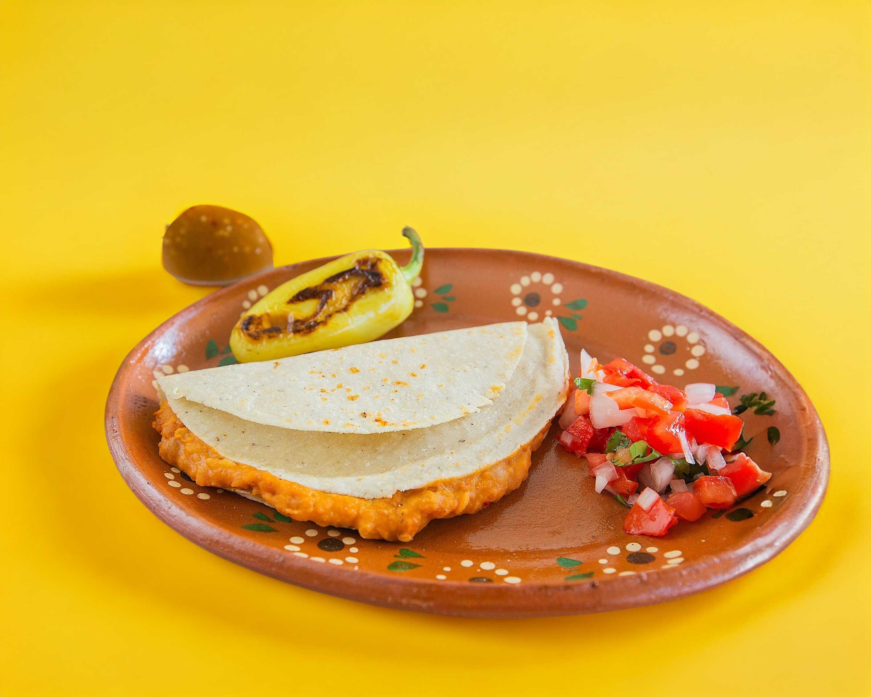 Mollete ranchero, pan tipo rodillo: contiene frijol, queso asadero y salsa mexicana. Tamaño 30 aproximadamente.