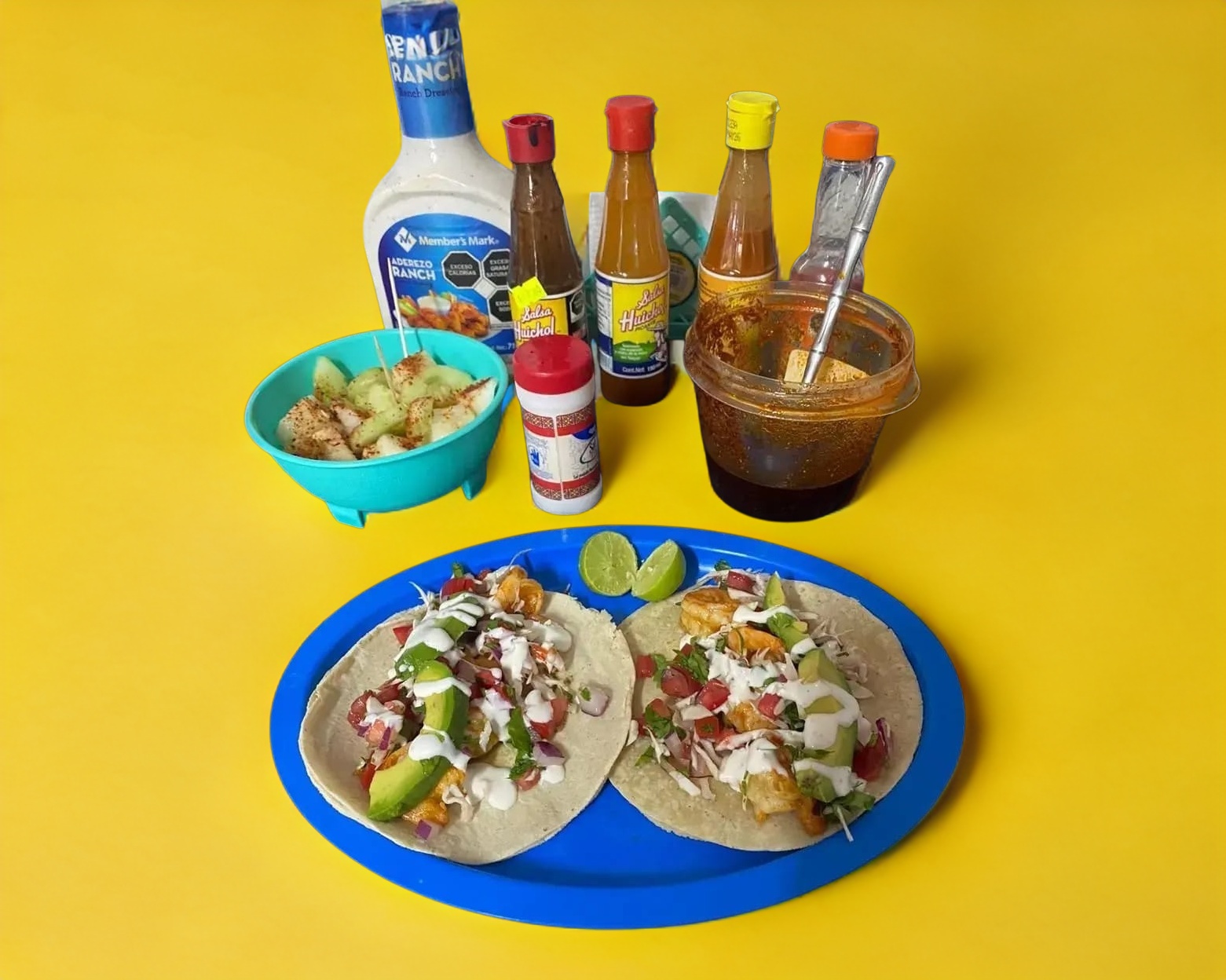 Camarón curtido con pepino, cebolla y salsa especial de la casa.