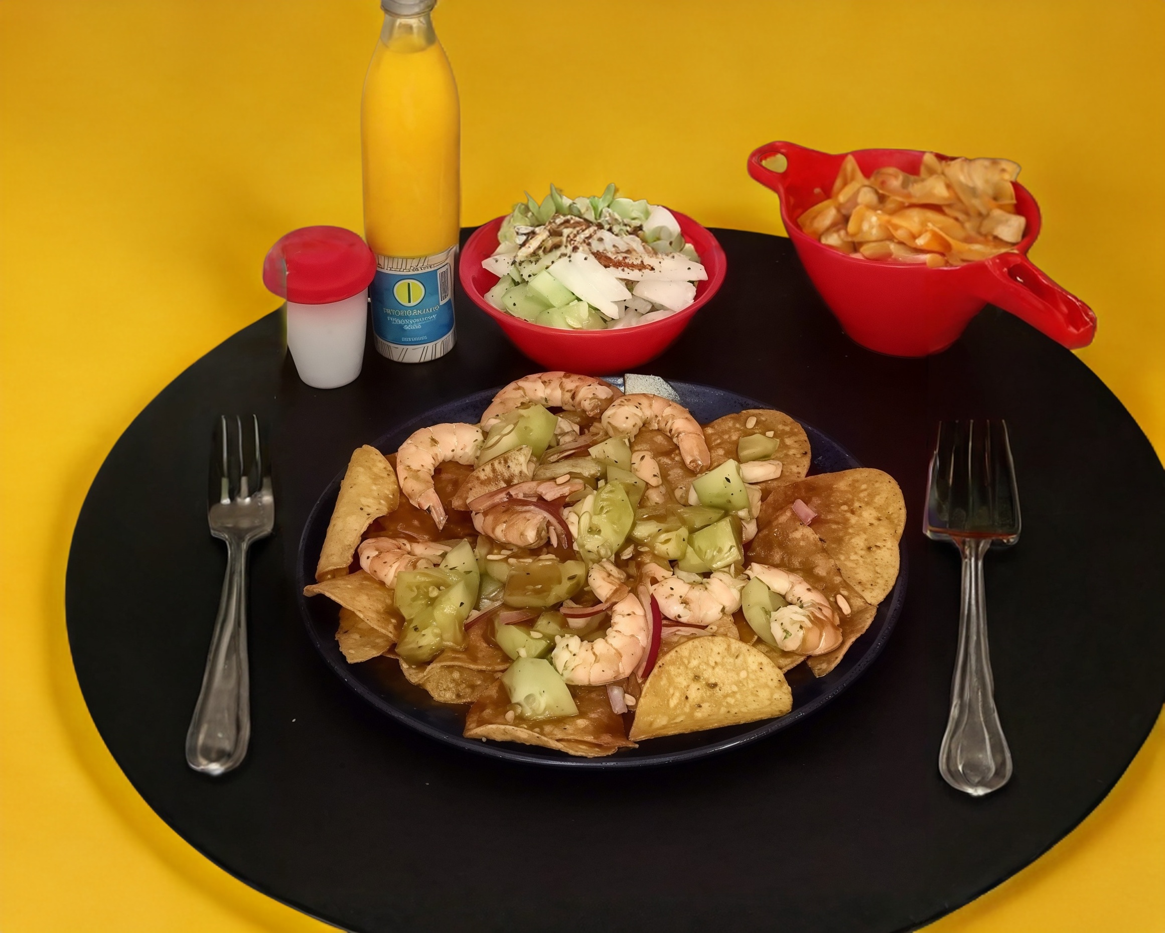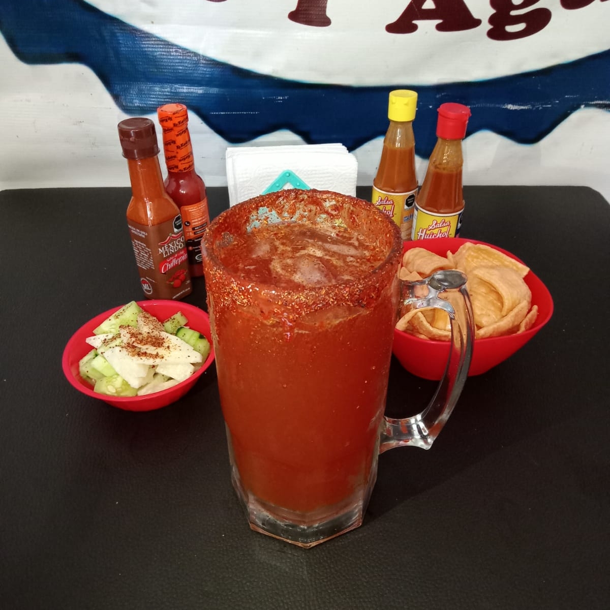 ( 11 pzs de camarón en un contenedor de 1 ltr cebolla, jitomate, cilantro con una chile de la casa especial y su respectivo caldo de camarón)