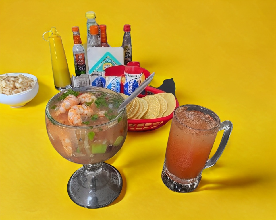 Camarón cocido con limón, pepino, cebolla y salsa especial de la casa.